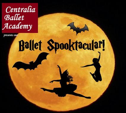 Join Centralia Ballet Academy for our annual Halloween event! At the center of this event is a performance by our company dancers and some of CBA's other odler students, featuring student choreography, excerpts from classic ballets and other works with a fun Halloween theme (slightly spooky but not scary). Audience members are encouraged to come in costume and there will also be games, a costume contest, face painting, a bake sale and boo-tique and more! Little ones will even get a chance to dance with their favorite character!